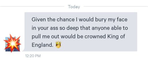 This guy is back again… This isn’t the first time Orbit has messaged me either, he had an account a few months ago but when I started chatting to him he told me it needed to be discreet as he was seeing someone. I tell him to fuck off & get off the chat app. I’m so sick of men finding someone else to be with, other than me but still talking to me, trying to fuck me! I didn’t speak to him again. So when he comes back this time, I almost don’t speak to him but I am chatting to no one when I start chatting to him again. He says that he’s single, I’m not 100% sure that’s true, but I have to take it at face value that he is.