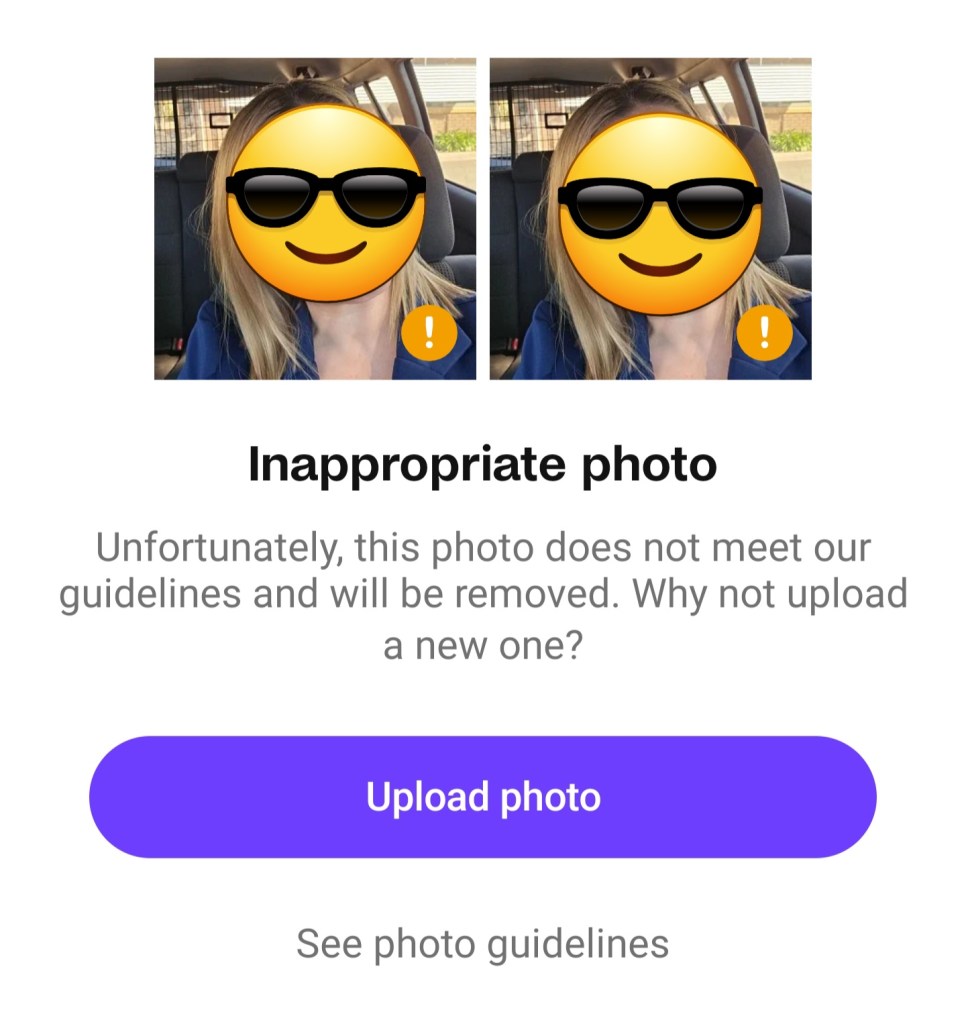 I have definitely not breeched the guidelines in any way at all with cleavage! Of course, there is no real appeals process, just like Facebook, they can do whatever they like because they can. There is no email address, you can’t post on their social media as they have that switched off… I message them on FB messenger but I deleted my account before they can block me. Not that I’ll ever use Badoo again – but it’s the principle!!