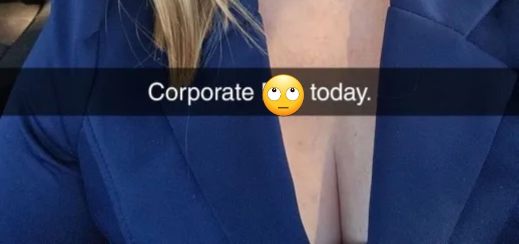 Surely not! I click on the picture in my photo album… Under the caption between the opening of the blazer is my boobs – shock, where else would they be… It can’t be that I have cleavage showing that it is deemed inappropriate? Fuck me sideways…
