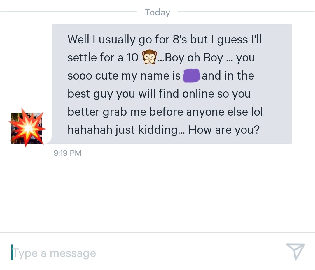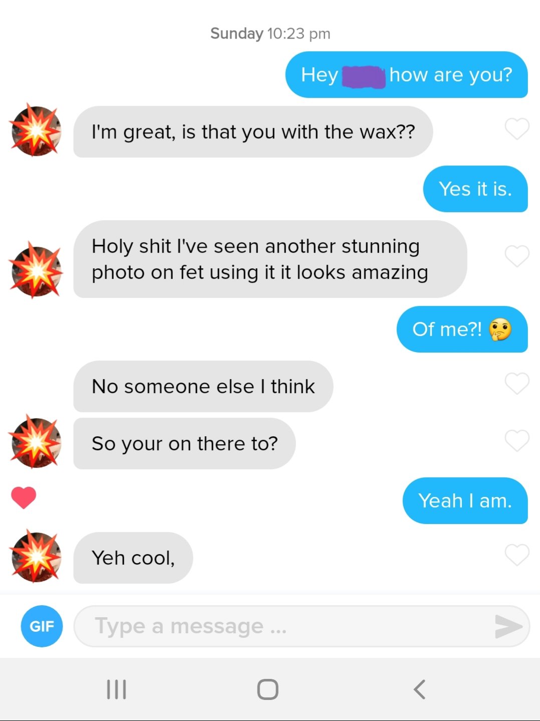 “Wow. Just wow. You joined the group & didn’t speak, besides the gif… In the group there is no pic on your profile for me, hence being deleted. I won’t apologise for having morals & not wanting to meet you for coffee, regardless of your intentions because you were dating my friend… My instincts were right about you. Thank you for showing your true colours.” & I send him a screenshot of the chat app to prove it.