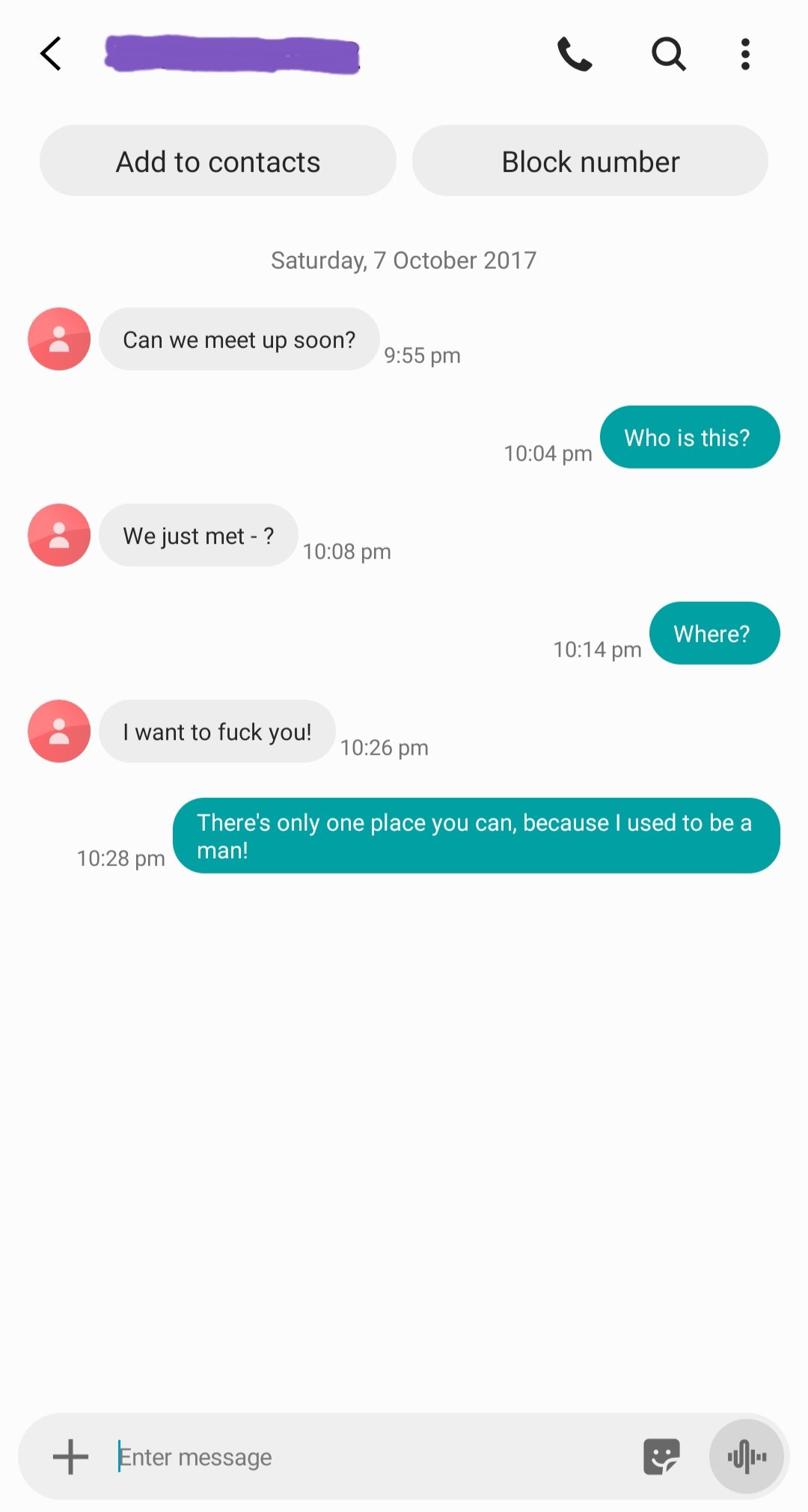 He says hey to me a few days later & joins the chat group I’m in & he was deleted for not having a profile picture – I didn’t know it was him to be honest. I just delete people who don’t chat. He messages me “Removed from chat? You really do have the issues others said… Deadest. Not everyone who shows you attention wants to fuck you. I think someone needs to get over themselves pretty quick. You’re a horrible, lonely person.” OH MY FUCKING GOD! What? This guy has a massive screw loose. I did nothing to him but delete him for a chat room & I’m horrible? I don’t even know if it was me who deleted him either… Jesus. Again I have no idea what he is even talking about.