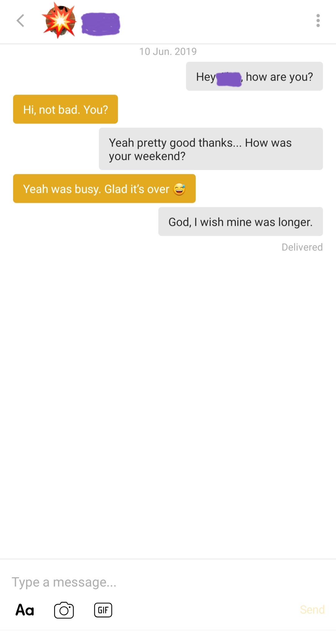 A few days later without a reply to the last message I get “So much was said & done without me around or knowing, that I have cut off everything. That weekend was so bad. Made me see a lot of rumours & shit that I don’t want to be a part of. I’ve gone back to only being friends with the couple & everyone else. I’m just going to stay at arms reach I think. I sure hope you are doing ok.” What the actual fuck is he talking about?! I have no idea. I even say that & he just said that the rumour mill went crazy & he’s just being friends with them. I try not to engage because who the fuck cares. I don’t even know what he’s talking about so I just say I’m confused & try to leave it. I ignore his last message.